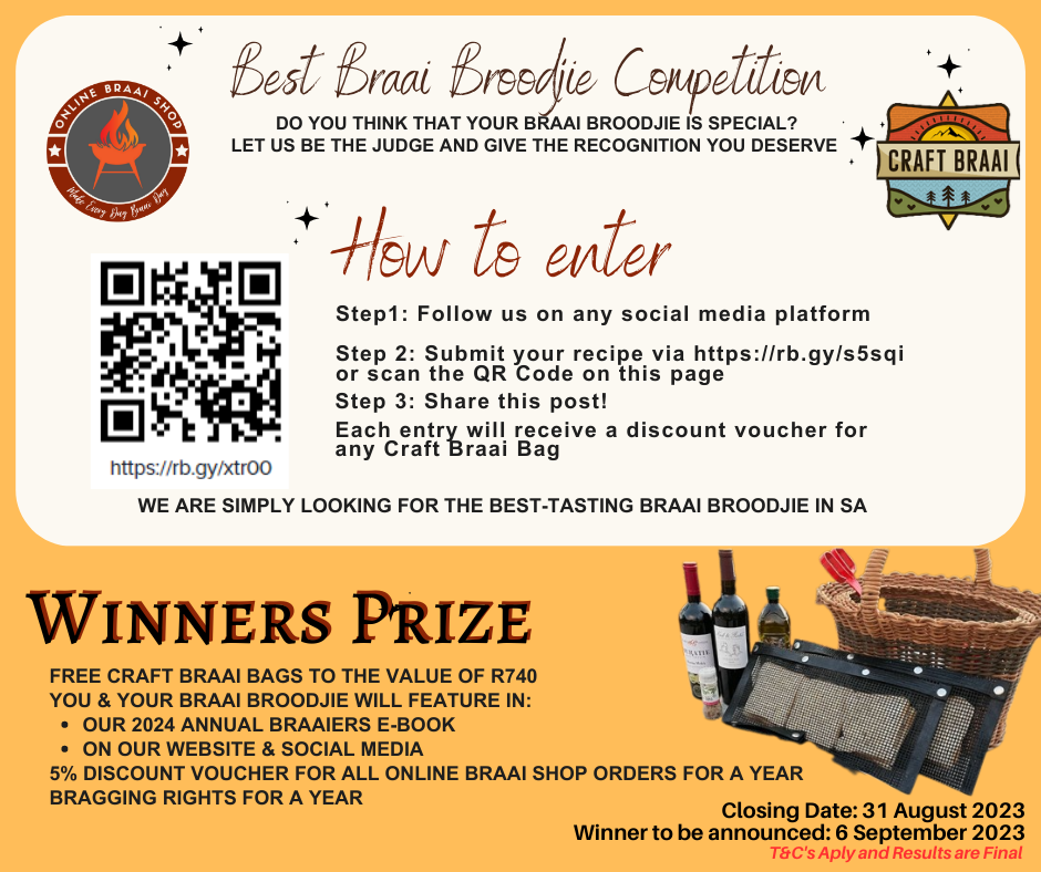 Please submit your entries below and receive a discount voucher for any Craft Braai Bag.